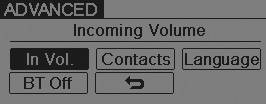While in ADVANCED menu, select “In Vol.” Use the knob key to set the desired volume and press the ENTER button.