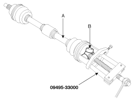 Using a plastic hammer, disconnect driveshaft (A) from the axle